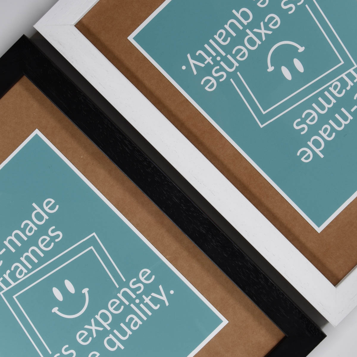 Black, white and grey 22mm open grain real wood frames, FSC™ certified.